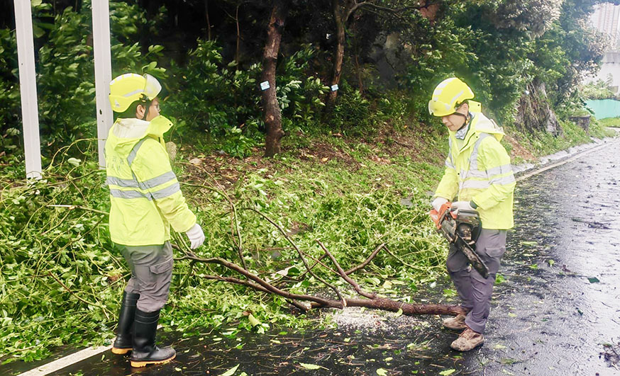 另外,市政署稱,署方在「樺加沙」襲澳後展開巡查,初步發現本澳約一千六百棵樹受到影響,其中約有三百四十棵倒塌、四百多棵出現斷枝、八百多棵樹出現傾斜情況,又指出樹木斷枝未來數日或會再現,呼籲市民注意安全和暫時不要在樹下逗留;至於垃圾棄置情況,市政署稱,「樺加沙」過後加派人手清理垃圾,首日已處理七至八成,形容情況良好,市民商戶配合度高。