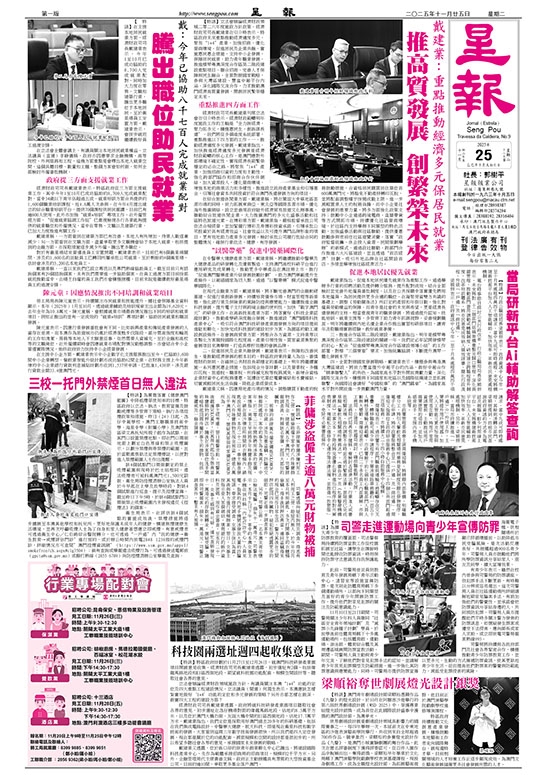 【特訊】為貫徹落實《健康澳門藍圖》中降低煙草使用率的目標,特區政府以立法、執法、教育宣傳及鼓勵戒煙等多管齊下策略,執行各項控煙政策和措施。昨日(24)日起,氹仔中葡學校、澳門工聯職業技術中學、海星中學(附屬小學)及澳門教區梁文燕托兒所親子館作為試點,在其門口設置禁煙地點,即在門口兩側地面上劃定白色界線和禁止吸煙圖示,以劃分禁煙與非禁煙的範圍,且於當眼處張貼法定禁煙標誌,以便對進入禁煙範圍人士作出提醒。