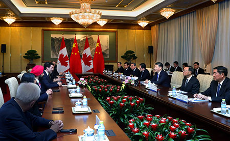習近平指出,中加雙方要擴大務實合作,充分挖掘合作潛力,在能源資源、科技創新、航空交通、金融服務、現代農業、清潔技術等領域打造更多合作亮點。中方願繼續支持有實力的中國企業赴加拿大投資,也歡迎加拿大企業積極參與“一帶一路”建設。中加兩國人民有著深厚的傳統友誼。雙方要加強教育、文化、旅遊、體育等領域交流合作,使中加友好更加深入人心。雙方要辦好2018中加旅遊年,中方願在籌辦2022年冬奧會過程中借鑒加方先進經驗。雙方還要加強在氣候變化等重要領域以及多邊框架內的協調和合作,不斷充實中加戰略夥伴關係內涵。
