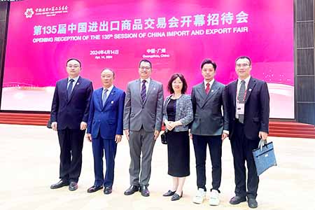 【特訊】“第135屆中國進出口商品交易會”開幕招待會於4月14日在穗舉行,澳門貿易投資促進局主席余雨生出席是次活動,期間與中國對外貿易中心主任儲士家、國家商務部外貿司司長李興乾、廣東省商務廳廳長張勁松、廣東省人民政府秘書長洪謙及港澳工商界代表會面,就促進內地和港澳地區商貿合作以及支持粵港澳大灣區發展等進行交流。