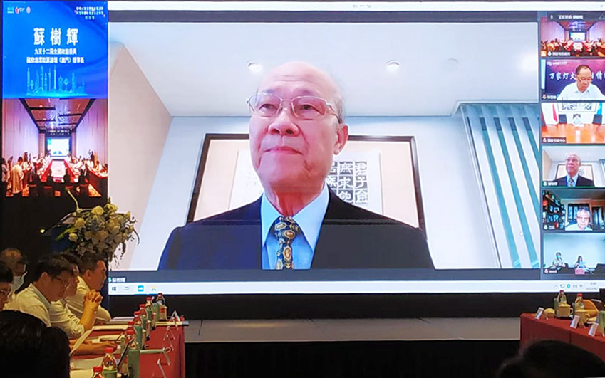 九至十二屆全國政協委員、國際清潔能源論壇(澳門)理事長蘇樹輝代表澳門國際清潔能源論壇對參加本次會議的各位領導、院士、專家表示熱烈歡迎和衷心感謝。他介紹到,澳門國際清潔能源論壇在全國政協和澳門特別行政區政府的大力支持下,現已發展成為推動能源革命、雙碳目標和生態文明建設的重要陣地。國家電投集團是論壇的核心骨幹成員,雙方圍繞推進粵港澳大灣區、橫琴粵澳深度合作區綠色低碳發展合作已簽訂戰略合作協議,未來將形成和創建國家技術創新中心的研發實體,創辦“零碳學院”,共同推動國內外技術交流合作、高端人才和項目的引進。此外,雙方還同意聯合發起緊扣“一帶一路”和“雙碳”主題的產業基金,並以國家技術創新中心建設驅動全球生態文明標杆建設,將橫琴打造成零碳島,推動區域碳達峰、碳中和示範落地。未來論壇將聯合國家電投集團等各理事單位以實際行動支持澳門更好融入國家發展大局並祝本次會議取得圓滿成功。