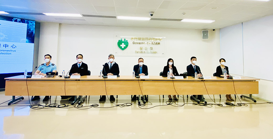 【特訊】新型冠狀病毒感染應變協調中心7月12日舉行記者會,衛生局仁伯爵綜合醫院醫務主任李偉成、社會工作局社會互助廳廳長蔡兆源、教育及青年發展局非高等教育廳廳長張子軒、衛生局疾病預防及控制中心傳染病防控處處長梁亦好、警察總局警務聯絡及公共關係處處長張健欣、治安警察局公共關係處處長李德輝、旅遊局公共關係處處長藍同好分別介紹了本澳及鄰近地區整體防疫情況。