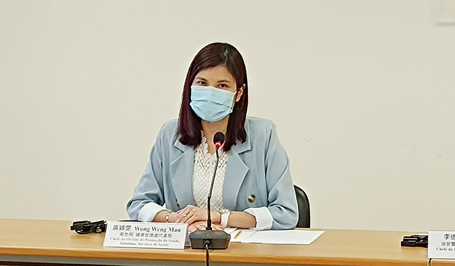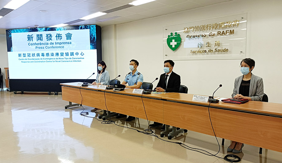 新型冠狀病毒感染應變協調中心昨日舉行記者會,教育及青年發展局副局長黃嘉祺、治安警察局公共關係處處長李德輝、旅遊局公共關係處處長藍同好、衛生局疾病預防及控制中心健康促進處代處長黃穎雯分別介紹了本澳的整體防疫情況。