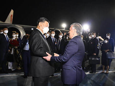 烏茲別克斯坦總統米爾濟約耶夫、政府總理阿裡波夫、外長諾羅夫、撒馬爾罕州州長圖爾濟莫夫等高級官員在機場熱情迎接。