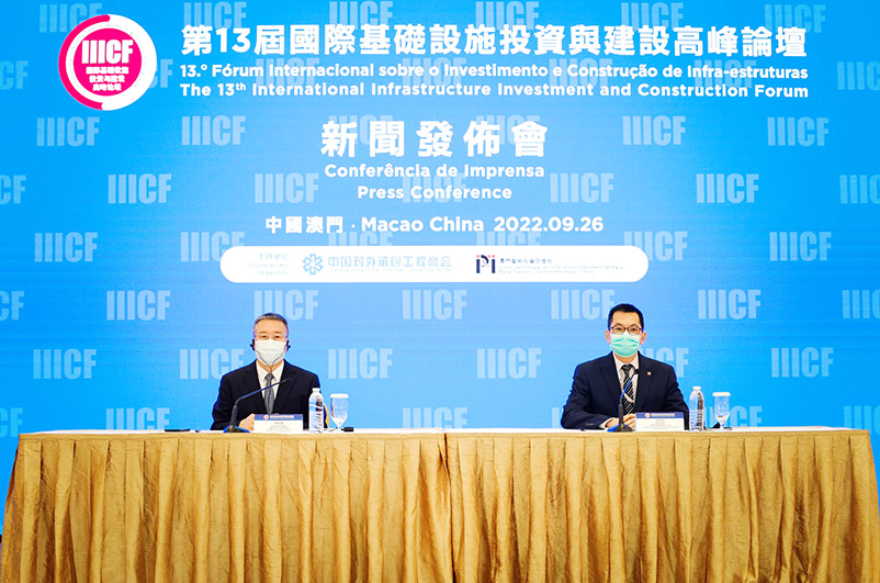 「第十三屆國際基礎設施投資與建設高峰論壇」新聞發佈會昨日舉行,中國對外承包工程商會會長房秋晨及貿易投資促進局代主席余雨生出席介紹相關籌備工作。