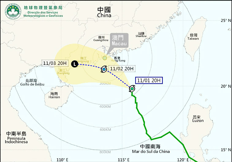 而按最新預測,「尼格」採取比預期更偏北及更接近本澳的路徑,並將於今日(二日)下午至明日(三日)初時在本澳約一百公里範圍內掠過;由於「尼格」的移動路徑及減弱程度仍存在不確定性,所以今日日間改發八號風球的機會為中等至較高。