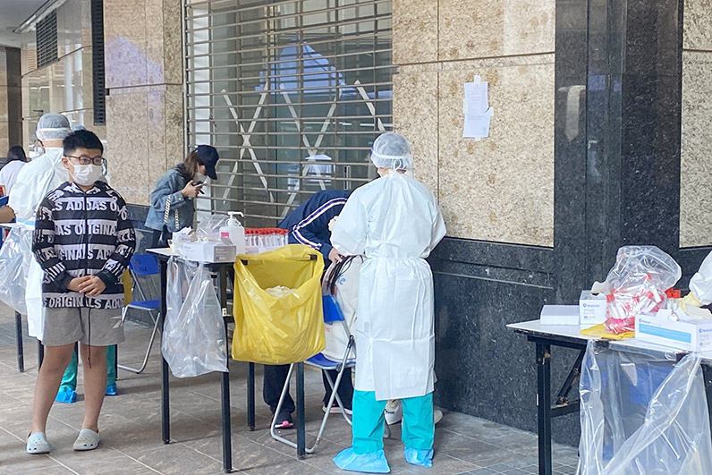 同時,協助衛生局有序地分批安排圍封大廈每名居民接受病毒核酸篩查採樣。