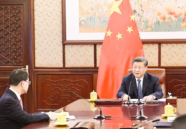 習近平表示,李家超擔任行政長官以來,帶領新一屆香港特別行政區政府,勇於擔當、務實有為,團結社會各界,堅決維護國家安全,大力恢復經濟活力,積極回應民眾關切,認真學習宣傳貫徹中共二十大精神,展現出「愛國者治港」新氣象,香港在「一國兩制」正確軌道上穩步前進。中央對李家超行政長官和特別行政區政府的工作是充分肯定的。