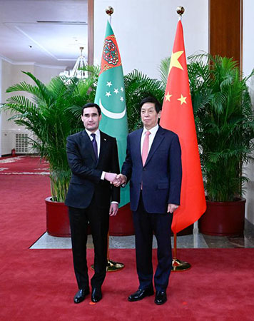 【中新社北京1月6日電】全國人大常委會委員長栗戰書6日在人民大會堂會見土庫曼斯坦總統謝爾達爾·別爾德穆哈梅多夫。