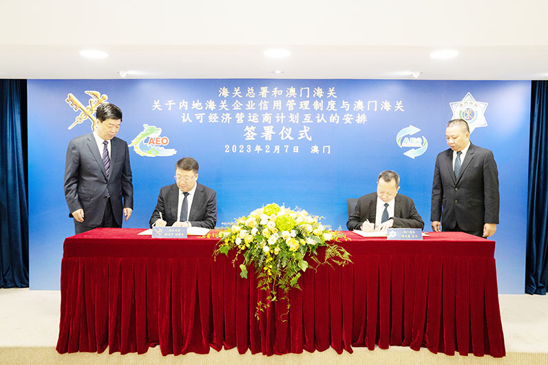 【特訊】澳門海關表示,於本月7日,海關總署副署長孫玉寧與澳門海關關長黃文忠在澳門海關總部大樓共同簽署《海關總署和澳門海關關於內地海關企業信用管理制度與澳門海關認可經濟營運商計劃互認的安排》(下稱《互認安排》),落實內地海關與澳門海關相互為對方認可的高信用企業提供便利通關措施。《互認安排》的簽署有助提升澳門企業的競爭力,進一步推進粵港澳大灣區貿易安全與通關便利化,並為本地推出「認可經濟營運商」計劃創設有利條件。