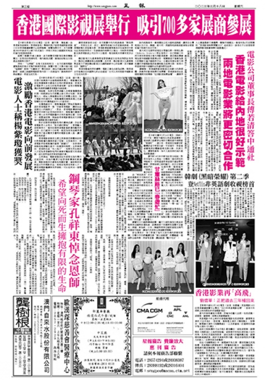 電影公司董事長傅若清答中通社 香港電影給內地很好示範 兩地電影業將更密切合作