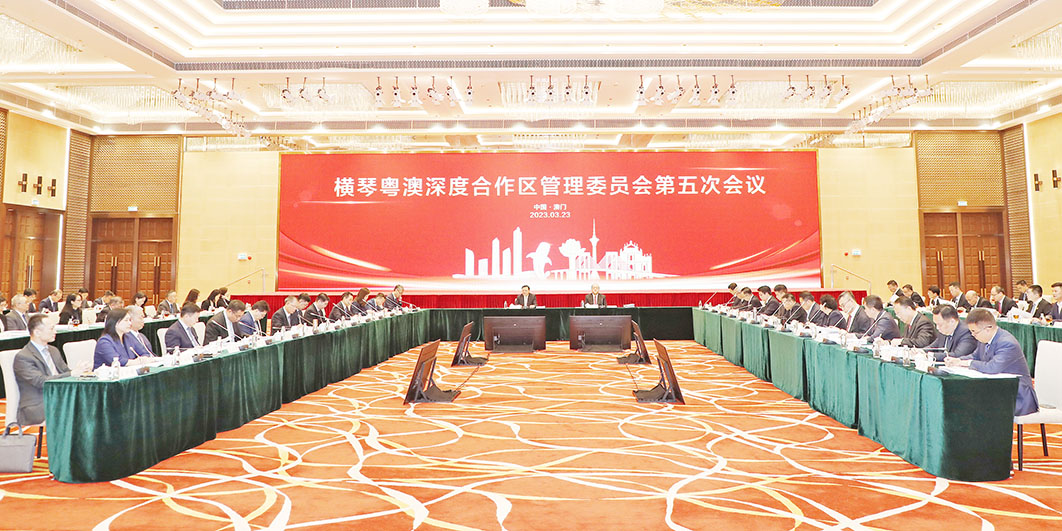 【特訊】橫琴粵澳深度合作區管理委員會第五次會議於昨天(23)日在澳門中國與葡語國家商貿合作服務平台綜合體舉行。會議由橫琴粵澳深度合作區管理委員會雙主任,澳門特別行政區行政長官賀一誠和廣東省省長王偉中共同主持。