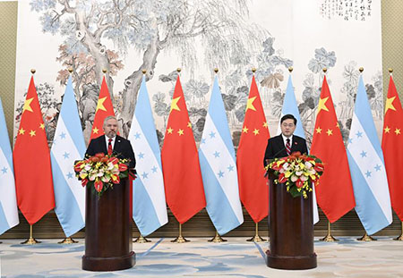 【中新社北京3月26日電】3月26日,中國同洪都拉斯簽署《中華人民共和國和洪都拉斯共和國關於建立外交關係的聯合公報》。兩國政府決定自公報簽署之日起相互承認並建立大使級外交關係。