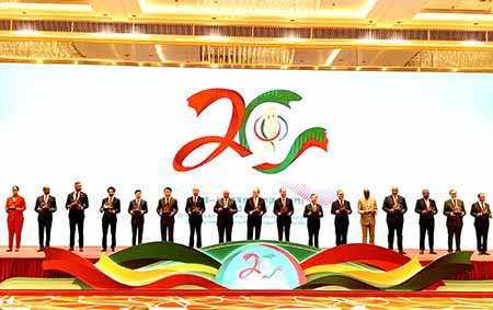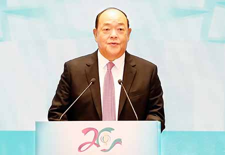 中國—葡語國家經貿合作論壇(澳門)成立二十周年招待會昨午在中國與葡語國家商貿合作服務平台綜合體舉行。賀一誠、全國政協副主席何厚鏵、中聯辦主任鄭新聰、中國外交部駐澳特派員公署特派員劉顯法、中國商務部台港澳司副司長李曉暉、中葡論壇常設秘書處秘書長季先峥、葡語國家駐華大使使團長瑪利亞·古斯塔瓦以及各葡語國家代表團團長等主持中葡論壇成立二十周年系列活動啓動儀式。各界代表、工商協會、大專院校、葡語國家社團、中國內地企業等近三百人出席了招待會。