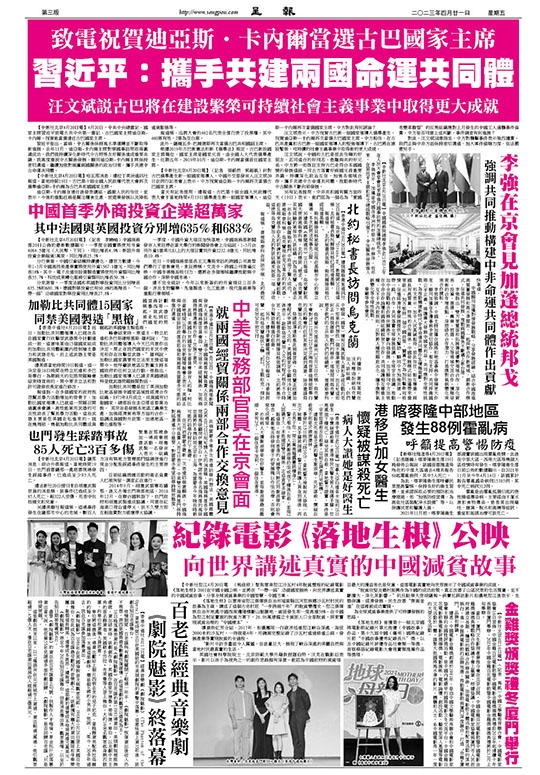 【中新社北京4月20日電】哈瓦那消息:據拉丁美洲通訊社報道,當地時間19日,古巴第十屆全國人民政權代表大會再次選舉迪亞斯-卡內爾為古巴共和國國家主席。