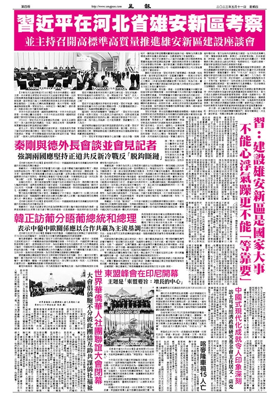 5月10日,習近平在河北省委書記倪岳峰、省長王正譜陪同下,深入雄安新區的高鐵站、社區、建設工地等,就高標準高質量推進雄安新區建設進行調研。
