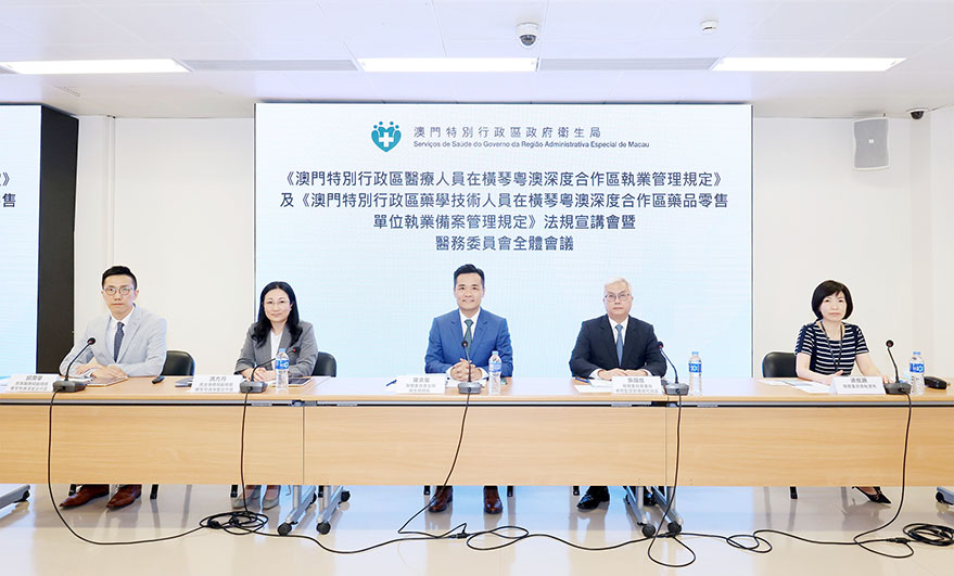 羅奕龍主席在會議上發言時表示,《醫療人員管理規定》和《藥學技術人員管理規定》經珠海市第10屆人民代表大會常務委員會第14次會議於今年5月26日審議通過,並將於8月1日起施行。《醫療人員管理規定》允許本澳15類醫療人員在澳門從事相關執業活動滿2年後,經註冊並取得執業證書便可在深合區範圍內提供醫療服務,無需再通過內地資格考試或短期行醫、短期執業制度申請。而《藥學技術人員管理規定》明確指出本澳藥學技術人員(包括本澳藥劑師、中藥師、中醫生和藥房技術助理等)依規可在深合區藥品零售單位提供藥學服務,當符合規定條件並經深合區藥品監督管理部門備案後,即可在深合區藥品零售單位直接提供藥學服務,無需參加內地相應考試。