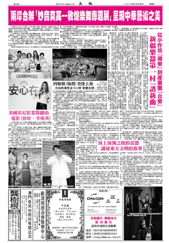 同時,“妙音莫高——敦煌樂舞”主題系列講座近日走進島內多所高校,專家深度解析“敦煌舞演進史與再創”“敦煌舞樂系統的編制”“敦煌樂器”等話題,還有舞者現場演繹敦煌樂舞,令島內師生大開眼界。
