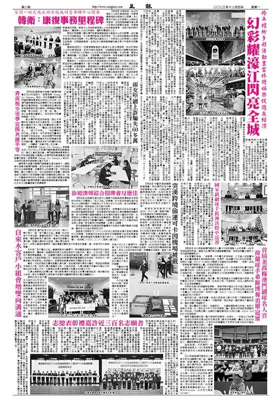 【特訊】「2023幻彩耀濠江」 隆重登場;開幕儀式於12月2日傍晚在東方海岸休憩區舉行,為居民和旅客送上璀璨繽紛的澳門遊樂旅程。為期近三個月的跨年標誌性品牌活動,將豐富澳門夜間休閒娛樂,促進社區經濟。