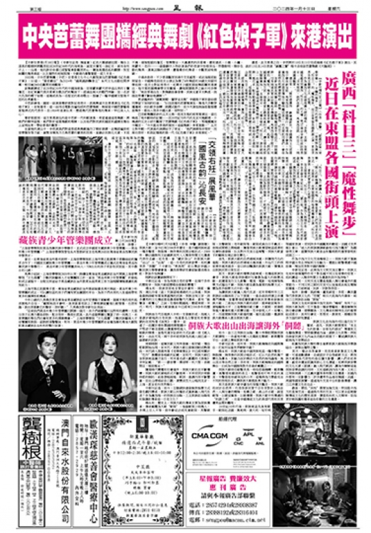 據悉,此次香港之行,中芭將於10日及11日完成兩場《紅色娘子軍》演出,其後於13日及14日表演“鎮團之寶”瑪卡洛娃版芭蕾舞劇《天鵝湖》。
