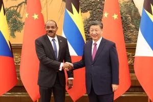 習近平指出,安提瓜和巴布達是東加勒比地區最早同新中國建交的國家之一。建交41年來,中安兩國始終相互尊重、相互支持,成為大小國家平等相待、合作共贏的典範,兩國關係保持健康穩定發展,務實合作取得豐碩成果,人民友誼日益加深。新形勢下,中方願同安方密切各層級交往和治國理政經驗交流,加強發展戰略對接,深化務實合作,推動中安關係取得更多成果,更好惠及兩國人民。