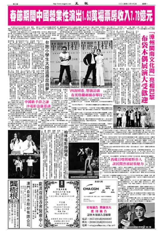 春節期間中國營業性演出1.63萬場票房收入7.78億元