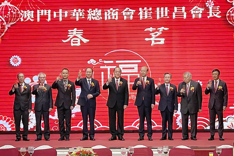 中華總商會會長崔世昌致詞表示,該會去年因勢利導研判疫後經濟的發展情況,推動經濟加快復甦。在新的一年,中總將憑著龍騰虎躍的幹勁,繼往開來、守正創新,全面貫徹落實二十大精神,支持特區政府依法施政,做好工商界領頭羊作用,廣泛團結工商界力量,配合政府優化營商環境,推動社區經濟發展,努力破解復甦和發展不均衡為商界帶來的影響和困擾。