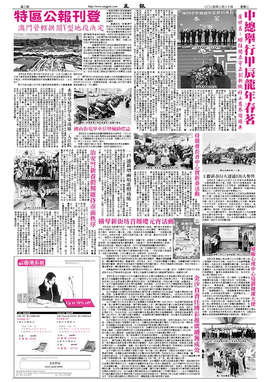 【特訊】中總舉行春茗,中總會長崔世昌稱,新的一年,中總全面貫徹落實二十大精神,努力破解復甦和發展不均衡為商界帶來的影響和困擾,以及持續帶領工商界積極投身到大灣區、深合區建設熱潮。行政長官賀一誠期望中總一如既往,在推進澳門經濟高質量發展中發揮帶頭作用,帶領工商界深度參與「一帶一路」、大灣區、深合區建設,共同落實「1+4」經濟適度多元發展規劃,以及繼續擔當好橋樑角色,在拓展海外旅客市場、四大產業招商引資等方面發揮更大作用。