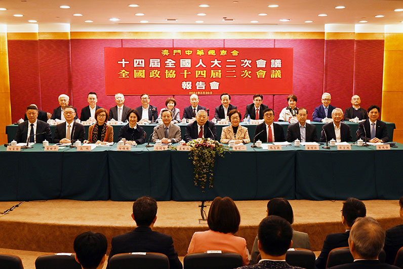 【特訊】澳門中華總商會昨(二十)晚在會址舉行「十四屆全國人大二次會議、全國政協十四屆二次會議報告會」。報告會由會長崔世昌主持。全國政協委員、中總副理事長何富強,全國政協委員、中總副理事長葉兆佳;全國人大常委、中總副會長高開賢,全國人大代表、中總副理事長崔世平先後向與會的會長、會董、理事、監事報告「兩會」基本情況和暢談參加「兩會」的感受和體會。中總副會長賀定一、何超瓊,理事長馬志毅,監事長高明等逾百人出席報告會。