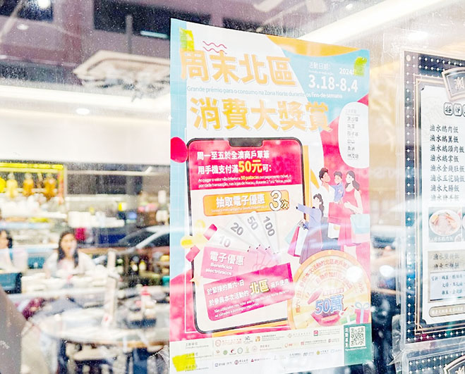 【特訊】經濟及科技發展局表示,特區政府聯同澳門中華總商會、澳門北區工商聯會,於3月18日至8月4日期間合辦 “周末北區消費大奬賞”促消費活動。