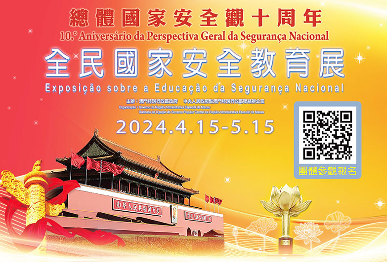 今年4月15日是我國第九個“全民國家安全教育日”,澳門特別行政區政府與中央人民政府駐澳門特別行政區聯絡辦公室連續第七次舉辦“全民國家安全教育展",本次展覽的主題為“總體國家安全觀,創新引領十周年”,將於4月15日至5月15日在澳門綜藝館舉行,參觀時間為星期一至日上午10時至晚上8時,並於星期六、星期日及公眾假期的早上10時及下午3時設有公眾導賞服務,提供普通話、廣東話、葡語及英語四種語言的導賞講解。人數在10人或以上的團體可於4月3日起透過“全民國家安全教育展"專題網站https://eesn.gov.mo“團體參觀報名"專頁報名參觀及預約導賞服務,每場次參觀人數上限為30人。如有疑問,可於辦公時間致電8800 6262查詢。
