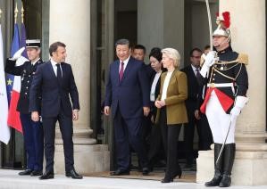 習近平指出,很高興再次同馬克龍總統、馮德萊恩主席舉行會晤。法國是我今年出訪的首站,今天的三方會晤增強了這次訪問面向歐洲的意義。中國始終從戰略高度和長遠角度看待中歐關係,將歐洲作為中國特色大國外交的重要方向和實現中國式現代化的重要伙伴,希望中法關係、中歐關係相互促進、共同發展。