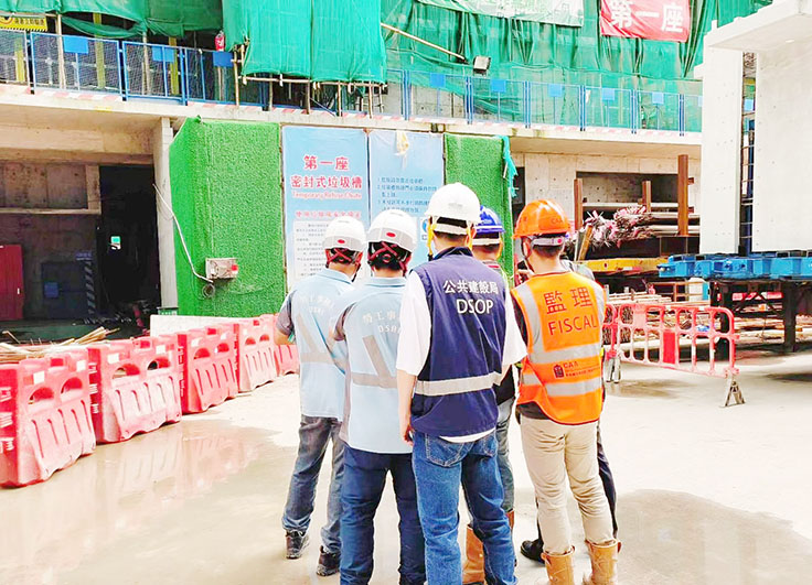 公共建設局及勞工事務局得悉事件後,即時派員前往現場了解。事發時,有現場工人在地面層垃圾收集站內發現傷者,經初步調查,傷者原工作安排為於外棚進行鋁模板工作,身上配有安全帶,初步懷疑失足墜下至垃圾槽,意外原因有待進一步調查。