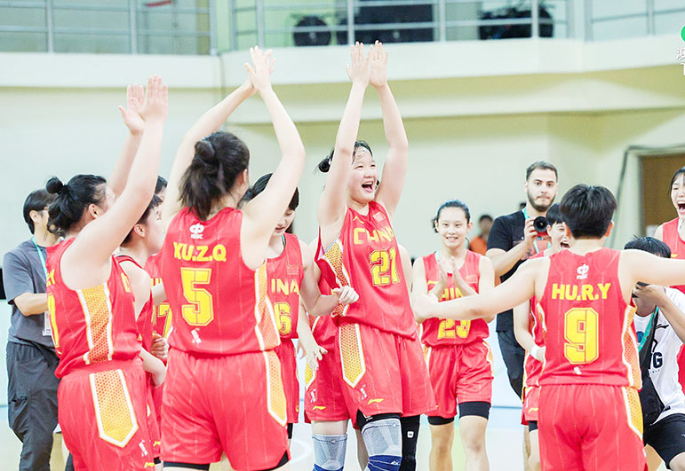 在本澳舉行的世界中學生籃球錦標賽昨日 (二日)上演兩場決賽,其中上午的女子組決賽,法國初段打出優勢,卡文搏到二加一,領先十九比十八完首節,慢熱的中國一隊開始入局,第二節輪流爆發,張賀玥射入三分球,全場貢獻十分,陣中有三人得分上雙,包括隊長胡瑞燕,交出全場最高的十九分,再射入一個三分球,內線方面則有王思琪,鎮守顏色地帶,頂著防守上籃命中,攻入十七分,半場中國一隊超前四十一比三十六,第三節法國頑強抵抗,迪莉奧陶特入三分球還以顏色,反超前1分,取得短暫的領先,但最後勝利都是屬於中國一隊,來到第四節中段,打出一段九比零的攻勢,成為勝負關鍵,張賀玥上籃完成,結果中國一隊七十二比六十五擊敗法國,奪得女子組冠軍。