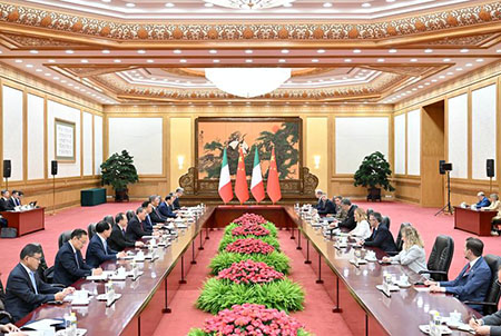 梅洛尼表示,近年來兩國高層及各層次各領域往來密切,有力推動了意中關係發展。意方致力於發展長期穩定良好的意中關係,願同中方深化經貿、投資、工業、科技、人文等領域務實合作,以兩國建立全面戰略夥伴關係20周年和紀念馬可·波羅逝世700周年為契機,搭建友誼的橋樑,探索新的合作方式,釋放合作潛力,構建更加緊密的合作關係,推動兩國全面戰略夥伴關係進一步發展。意方願為歐中雙方坦誠對話、建設更加穩定的合作關係發揮積極作用。