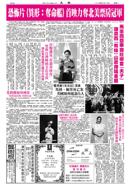 星報首頁 | 昔日新聞 | 各項專版 | 廣告業務 | 報社簡介 | 澳門日記