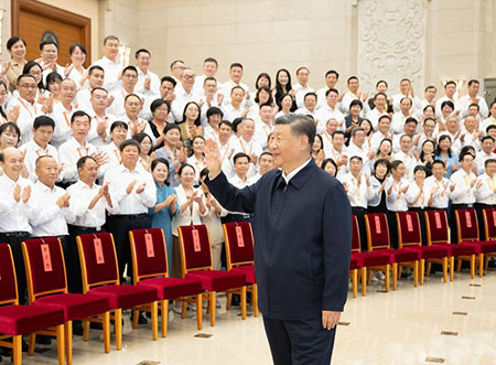會上,中央組織部、中央宣傳部、教育部、科技部、遼寧省、上海市、湖北省、貴州省、中國電子科技集團有限公司、北京大學負責同志作交流發言。 會前,習近平等領導同志親切接見了參加慶祝第四十個教師節暨全國教育系統先進集體和先進個人表彰活動代表,同代表們熱情握手,並同大家合影留念。 中共中央政治局委員、中央書記處書記,全國人大常委會有關領導同志,國務委員,最高人民法院院長,最高人民檢察院檢察長,全國政協有關領導同志出席會議。