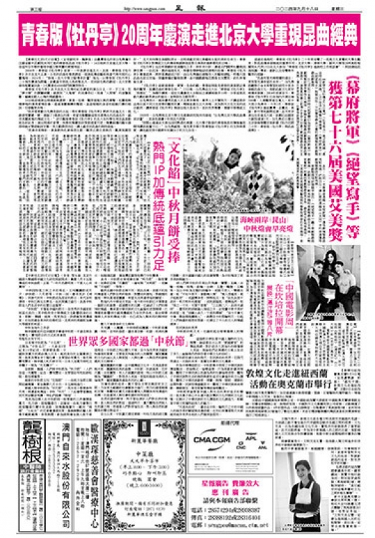【新華社北京9月15日電】(記者劉明洋、魏夢佳)由臺灣著名作家白先勇攜手江蘇省蘇州昆劇院共同打造的青春版昆曲《牡丹亭》,14日晚再次走進北京大學,在這所百年學府重現中國文學美麗的愛情神話。