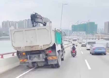警員在現場發現一個飛脫的車輪,未幾在對面線(友誼大橋往澳門方向)發現一部泥頭車停在橋上,其左後邊兩個車輪飛脫,經了解證實其中一個「甩轆」彈至對面線肇禍。