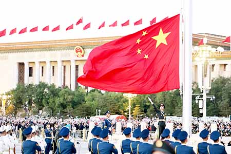 據內地官媒報道,當天約有12.3萬名來自五湖四海的市民遊客齊聚天安門廣場,共同見證五星紅旗冉冉升起的莊嚴時刻,慶祝新中國75周年華誕。