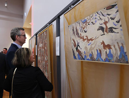 在中國駐拉脫維亞大使館舉行的國慶招待會上,湖北武漢市非物質文化遺產展演團奉獻了精彩的漢劇、木偶戲表演及書畫展示。此外,拉脫維亞本地藝術家、時裝設計師還現場展示了融合中式美學的作品。