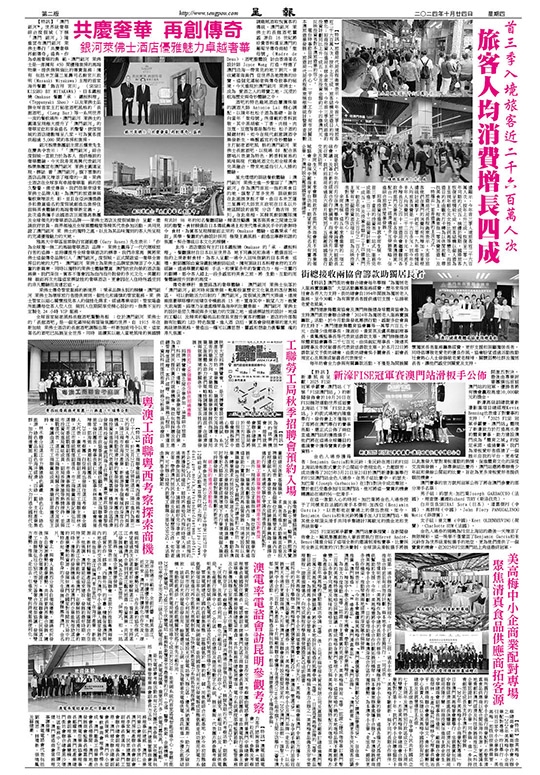 旅遊局代局長程衛東表示,大部分旅客他們在澳門的消費均有所增加,如果根據統計局數字,例如二零一九年即疫情前人均旅客消費是一千六百多元,到今年上半年人均消費到二千二百六十元,即差不多增長百份之四十。旅遊局會繼續聯同各政府部門及業界用好各項中央惠澳措施,配合「1+4」經濟適度多元發展策略,促進綜合旅遊休閒業發展。”