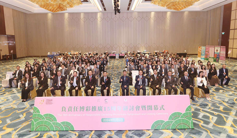 由社會工作局、博彩監察協調局及澳門大學博彩研究所合辦之「負責任博彩推廣十五周年—主動求助‧贏得未來(Seeking Help for Winning the Future)」研討會暨閉幕式昨日舉行。儀式由社會工作局局長韓衛、教育及青年發展局代局長黃嘉祺、博彩監察協調局副局長廖志聰、中聯辦經濟部副處長楊毅、旅遊局組織計劃及發展廳代廳長蔡昌鴻、澳門大學博彩研究所所長馮家超、澳門理工大學博彩旅遊教學及研究中心主任王長斌及銀河娛樂集團企業事務董事林志成等嘉賓主禮。各博彩營運商、港澳兩地多間賭博失調防治機構、相關社服團體代表及專家學者逾二百人出席交流。