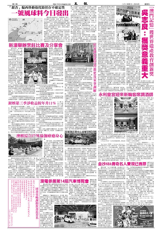 【特訊】澳門基金會的澳門記憶文史網於本年7月喜獲2024年《全球世界遺產教育創新案例獎》的十大“探索之星獎”。11月7至8日,由聯合國教科文組織 (UNESCO) 亞太地區世界遺產培訓與研究中心、杭州城研中心浙江省城市治理研究中心,以及浙江省文物保護利用協會聯合舉辦的 2024世界遺產創意創新者大會暨“全球世界遺產教育創新案例獎”頒獎典禮在杭州西湖區浙江省博物館文瀾閣,以及西泠印社舉辦。