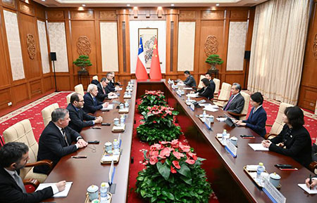 王毅指出,中國和智利都保持著內外政策的穩定性、連續性,都尊重彼此的核心利益,都始終理性積極看待對方發展變化,這是兩國關係保持健康穩定發展的成功經驗和有益做法,值得繼續弘揚。中方願同智方保持高層交往,密切各層級交流,發揮自貿協定牽引作用,不斷提升雙邊經貿合作水準,拓展資訊通信、清潔能源等新興領域合作,助力各自現代化進程。雙方應進一步加強發展戰略對接,將智利建設為中拉高品質共建“一帶一路”的典範。