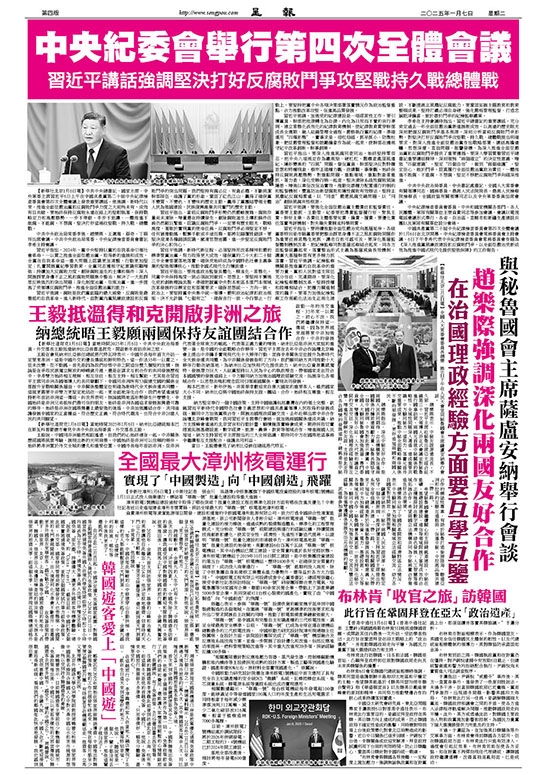 中國共產黨第二十屆中央紀律檢查委員會第四次全體會議於1月6日在北京開幕。中央紀律檢查委員會常務委員會主持會議。6日下午李希代表中央紀律檢查委員會常務委員會作題為《深入推進黨風廉政建設和反腐敗鬥爭,以全面從嚴治党新成效為推進中國式現代化提供堅強保障》的工作報告。