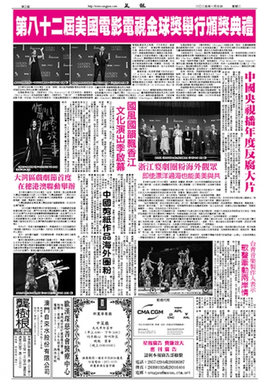 【中新社洛杉磯1月6日電】(記者 張朔)第82屆美國電影電視金球獎5日在加利福尼亞州比弗利山莊舉行頒獎典禮。