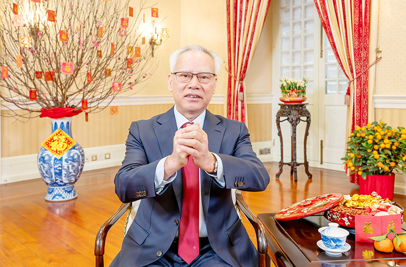 在新年的鐘聲即將敲響之際,我祝願祖國繁榮昌盛、澳門社會穩定祥和,全澳市民家庭幸福、安康順遂!向在節日期間仍然堅守工作崗位的各位公務人員和各行各業人士,以及其家人,致以崇高的敬意和衷心的感謝!