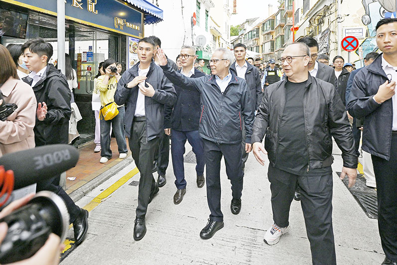 【特訊】行政長官岑浩輝於2月1日走訪社區,在大年初四實地瞭解節日期間商戶營運及市面情況,期間不時與途人、店主和店員互致新春祝福,氣氛熱鬧和諧。岑浩輝表示,特區政府將在廣納意見及充分掌握實況的基礎上,致力做好發展經濟與改善民生的各項工作,持續優化營商環境,讓更多居民和企業分享到經濟發展成果。