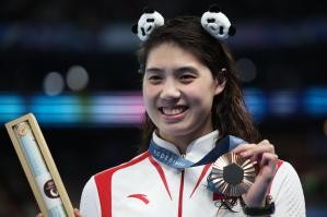 賽場上破浪前行的張雨霏,很熱衷於向世界展示中國元素。杭州亞運會和巴黎奧運會上,她都戴了同樣的熊貓發箍。